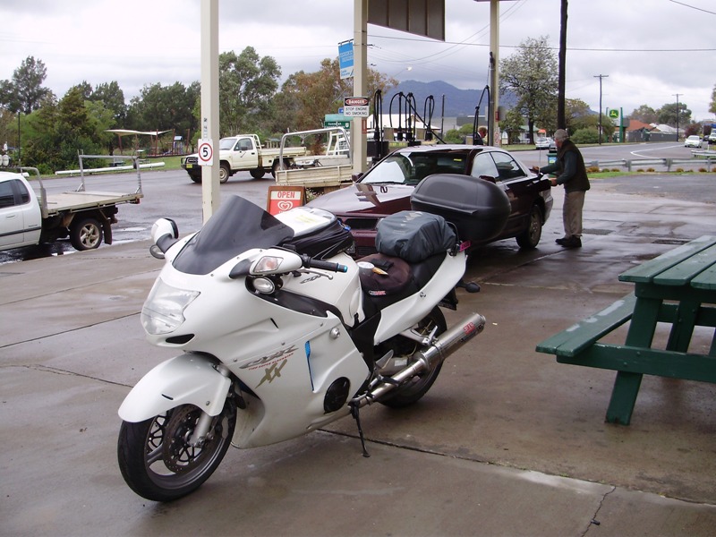 Angel’s packed and raring to go at 6:00am as we roll out the driveway in the rain…it’s a FarRide so of course it’s gonna be raining (wouldn’t be right if it wasn’t). First stop for fuel on the F3 at the twin servo’s. Pretty non eventful up the freeway and through the towns until Willow Tree where I turn off. The roads not bad, nice and peaceful, the rain hasn’t let up and the wind is getting worse. GPS is tuned to Quirindi for fuel and finally the rain has stopped.