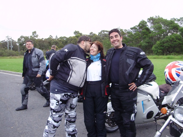 It’s getting late and still not sight of our last 1% rider Paul and I make a call only to get voicemail again. Not long after, we hear the rumble of a bike in the distance and then pass by the pub on the main road. Karl and I are running up the side road from the park and I holler out to Paul. By the time we reach the pub, Paul has stopped at the end of the street – thank god I’m out of breath. I ring him and he answers – phew LOL. “Turn around and you’ll see me standing in the middle of the road”. We direct Paul to the park, get him settled and fed as he tells us of his trip down. The stories and laughter are flowing from all directions, where has the time gone and desserts out – Ailsa’s homemade triffle – YUM! In true rider style we graciously THANK Rick & Ailsa for hosting us yet again and for putting on such a tantalising banquet for us.