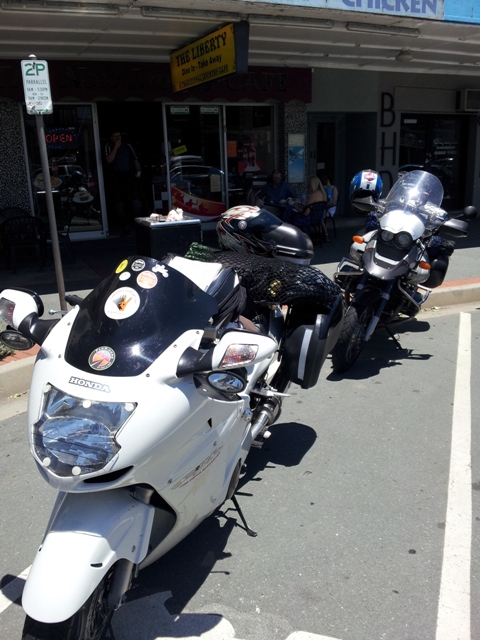 Home today is via the coast road and hoping it’s gonna be cooler today, but somehow I don’t think so….ho hum. The camelbak is full Karl and I head off. Not much happening but by the time we get to Morooya I need a girl brake and I’m hungry. We stop at the little Caltex, grab a drink, some chippies and a little girl stop, ahhh. It’s warming up already and just getting through town was an epic saga. Massive traffic jam for what? No idea…shrugs shoulders. I can feel the sweat running down my skin inside my gear and can’t wait to get some air flow. Phew out the other side and we get a move on.