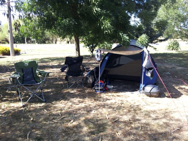 Curly sausage, bread roll and pasta salad for dinner, whalla !! Awesome! After a little bit of socialising it’s time to hit the hay, ahm well tent..he he