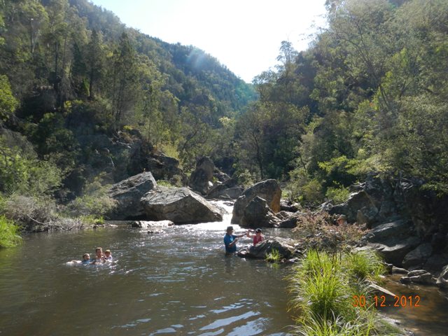 Now, this is my first ever time camping….can you believe that..wow! I’m excited. Micalong has NO showers but has a toilet (thank goodness, don’t think I’d have coped otherwise), so it’s off down the track to a swim hole which will be our bathing spot for the next 2 days.