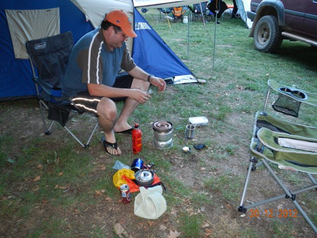 Pretty good hey!! After a lovely refreshing dip, it’s time to head back so Karl can cook us a gourmet dinner. I hear youse saying “What tha”, well don’t think just cos we’re roughing it we don’t have cooking gear…taa dah