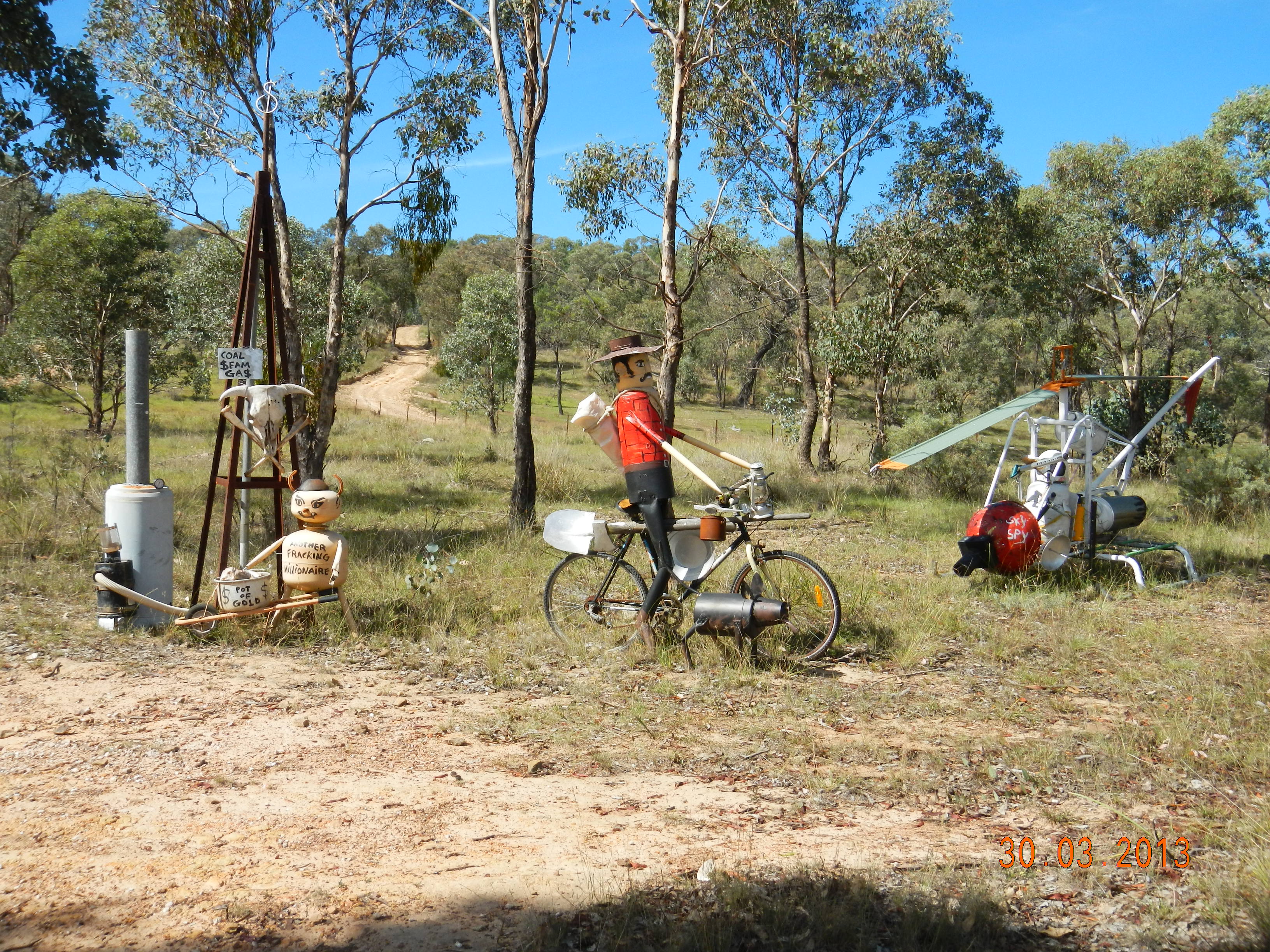 Windeyer Rd is home to an interesting array of art at the front of someones property