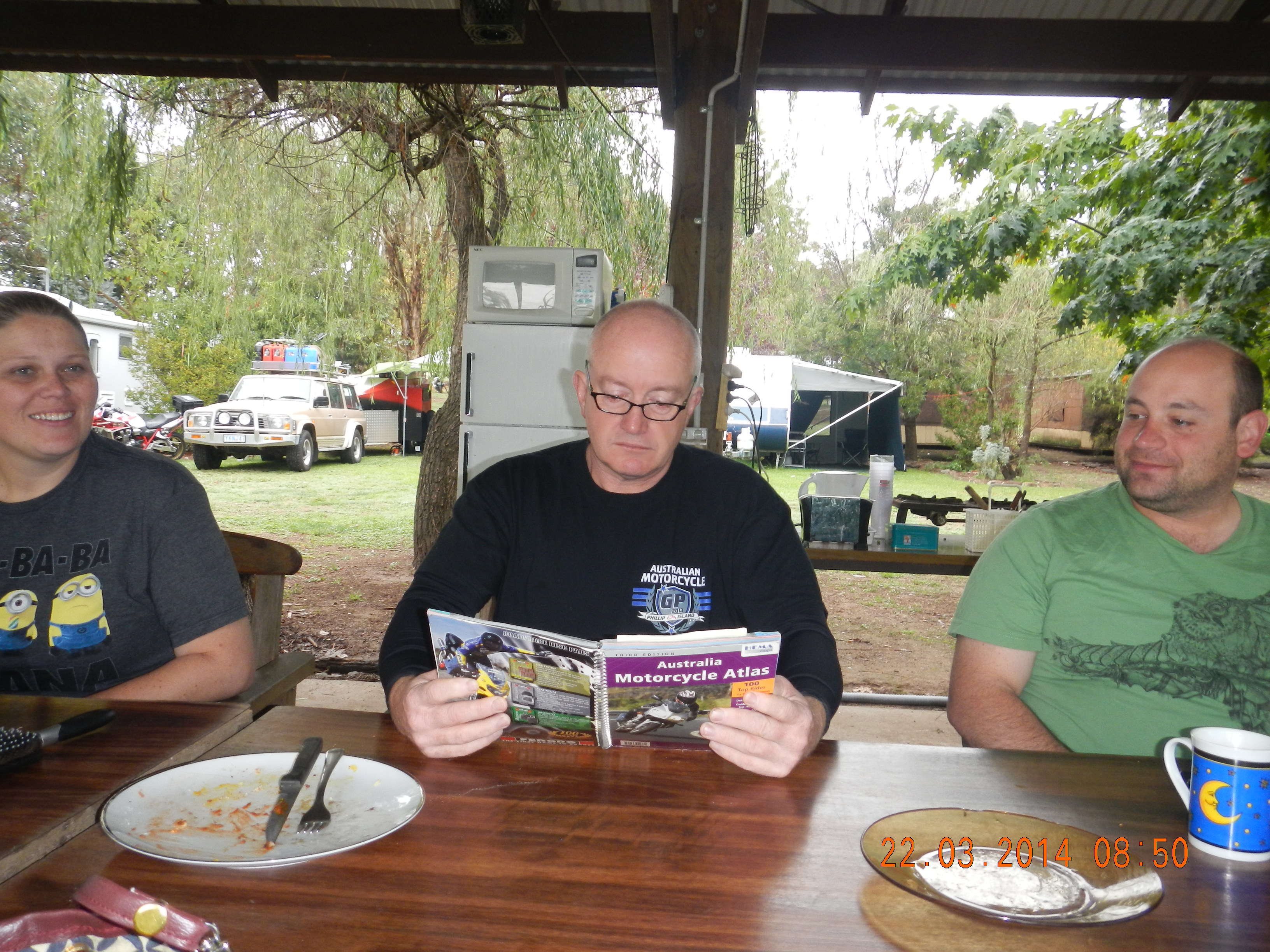 Andy, Ken, Bec & I go back into Corryong hoping to get a decent coffee and a chemist for me but argh!!! Everything is closed, I can’t believe it even the BP. Disappointed we turned around and went back to the Caltex fuel and settled for an ice-cream (no panadol either L ). Back in Tintaldra and it’s back to bed for me before dinner.