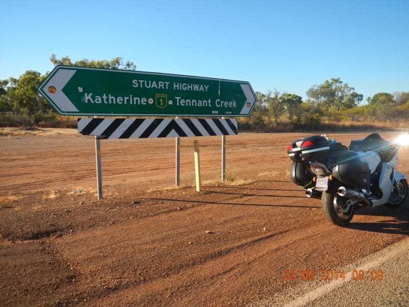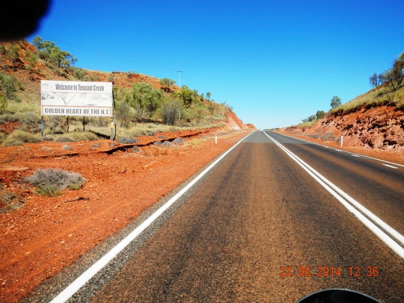 The long and winding it ain’t into Tennant Creek – it’s long and straight as an arrow, reddish and harsh. Fuel and a short snack break before heading on down the road.