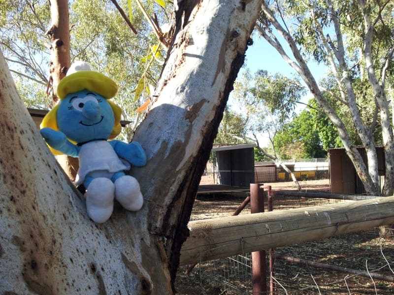 After I got settled, Smurfette and I thought we’d go for a walk through the caravan park. They have a few animals and this black rooster that just roams around as he likes.