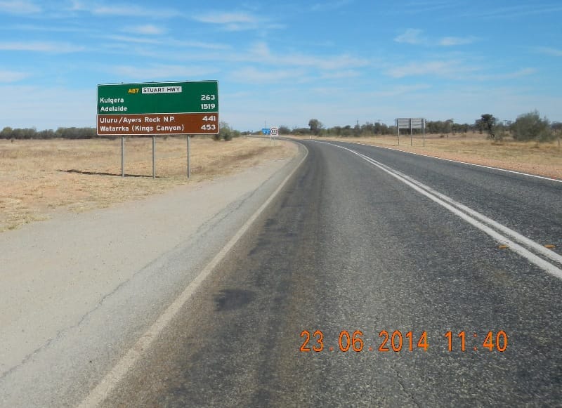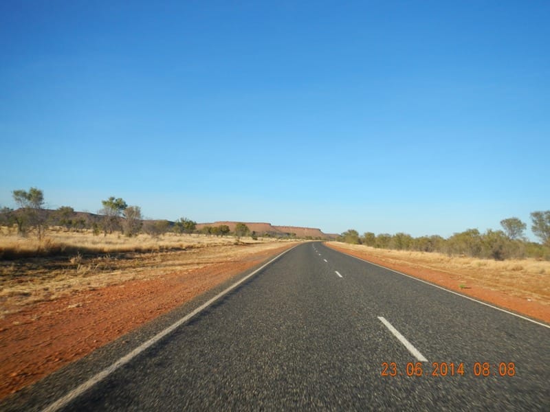 I get fuel in Alice and really need a comfort stop and a jumper but other than going right into town to find something I thought I’d get something on the way out. Bugger me if there wasn’t a flaw in my cunning plan…..there were no other stops. I pulled over on the side of the road and rang Karl to let him know I was ok and I’d ring him tonight from wherever I was. Anyway I grabbed a pic before turning and heading for Erldunda.