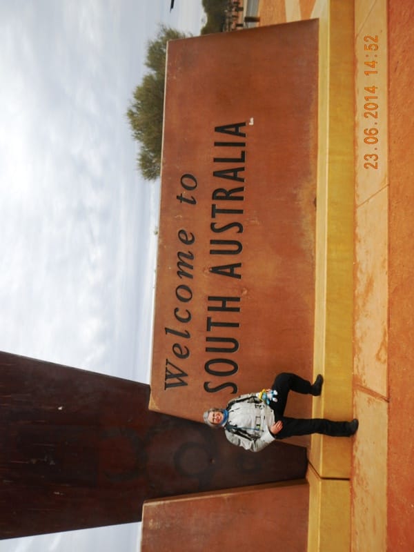 Into Erldunda for lunch and it’s only 1:13pm – I’ve made really good time. I shudder from cold when I get off and go in for a toasted sambo and a cuppa tea to warm up. It’s too early to stop and I decide to push on through to Marla and hopefully get a room. This time before heading off I put the liner in my jacket and don the winter gloves – yeah!