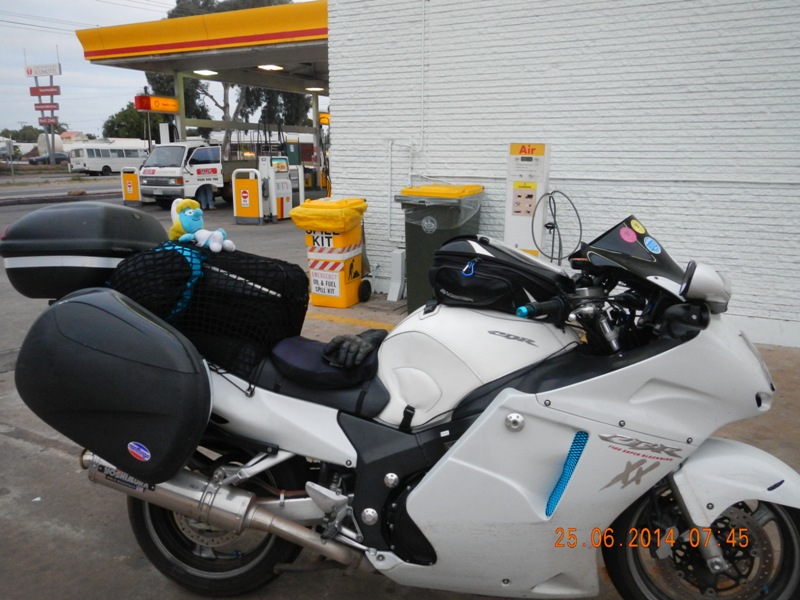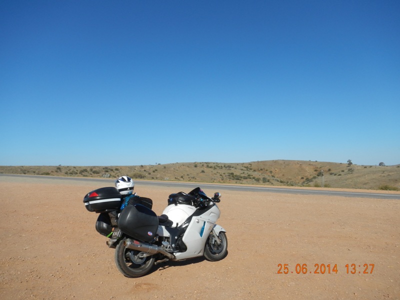 Angel’s front tyre is low on air so off to the Port Augusta Mobil servo but wait – NO air available – WHAT?? Down the road to Mr Shell and he has digital and working so get the job done and on my way.