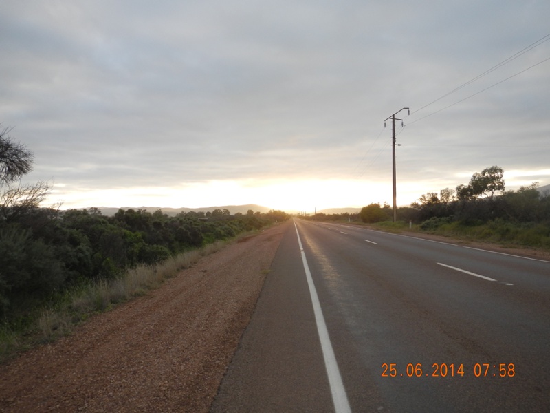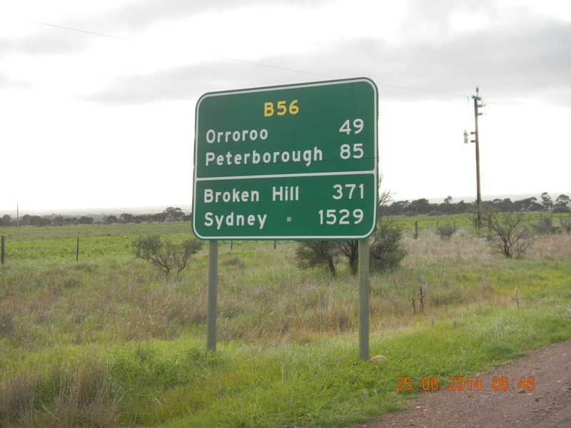 Before long am in and out of Peterborough before the last part of the first leg for today into Yunta for fuel, hot chocolate and an Anzac biscuit. The wind has picked up and has a icey bite to it. The BP here never closes – handy to note.