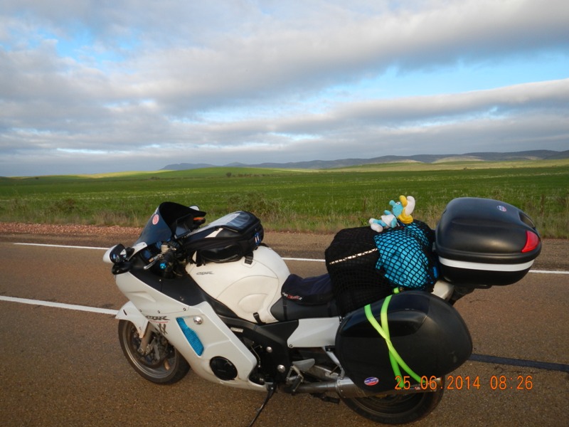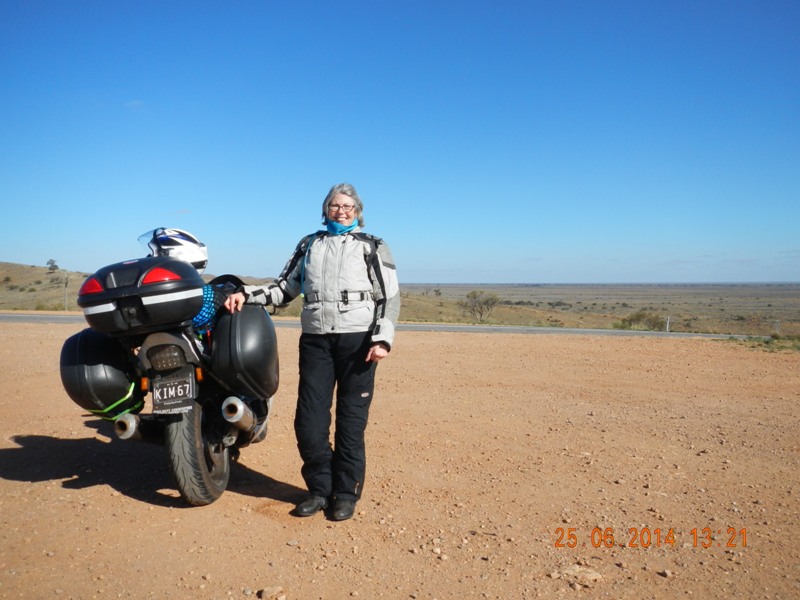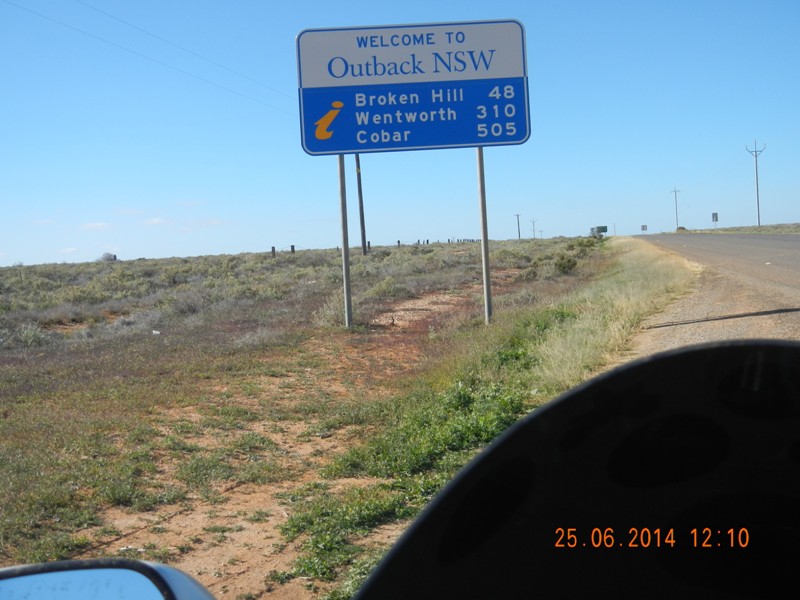 I’m a bit excited today cos I will be meeting fellow FarRider friends Baz & Liz in Broken Hill. The sun is shining but the wind chill is brrrr, my shoulder starts to ache and my hand is tiring quickly….damn this getting older business. I had the sense this morning to tape up my wrist to help take some of the strain fighting the winds.