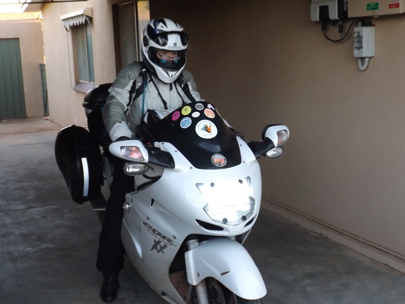 Now I get my gloves out of my tank bag but didn’t notice my camera, find a room at the Comfort Inn and unpack. It’s now that I notice my camera is gone!!! It’s nowhere to be found. I ring the Shell and Macca’s but nobody has handed anything in….sad panda. Ring Karl and he says retrace your steps you never know. SO I get geared up again and go out looking…..NOTHING!! it’s gone. The worst thing is I hadn’t copied off the any of the photos I’d taken from the last 3 days – so no Port Augusta, Coober Pedy, Marla, Broken Hill, Silverton, Mundi Mundi, Emmdale or Cobar photos – they’re all lost 🙁