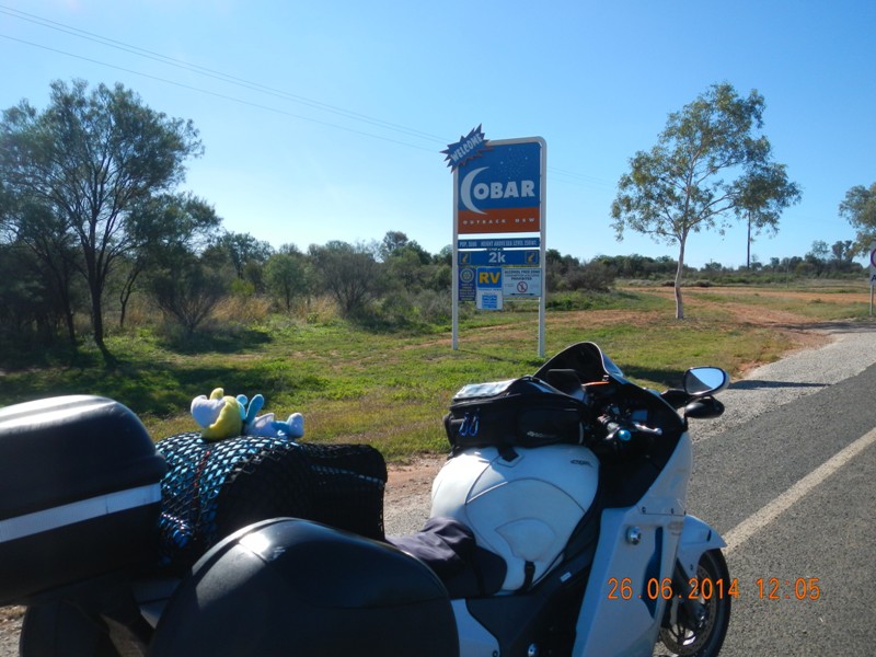Back on the road and it’s only 168 kays to Cobar. I stop and get a pic of the “Welcome to Cobar” sign