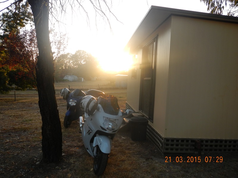 Now somewhere during the day, I saw this mist? I dunno where it came from but it seemed to become more vibrant as they day went on. It started as a slight pink but became this brilliant red colour…..go figure, what’s that all about..ROFL 🙂 Anyway, Karl accused me of being a hoon…me! really! I did really love that ride down the mountain to the Khancoban T-intersection though.