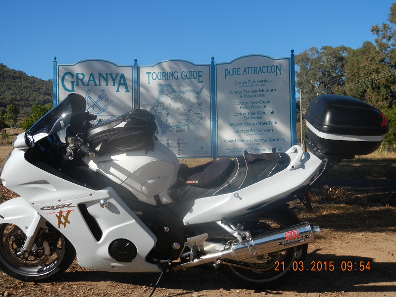 Onto Granya Gap – I love this road (confession time – it’s much more fun on Daisy …shhhh don’t tell Angel though, OK – deal!). There is so much water around in the river running along the road all the way and the cows are grazing on beautiful green grass. The end of Granya at the intersection waiting for everyone to arrive.