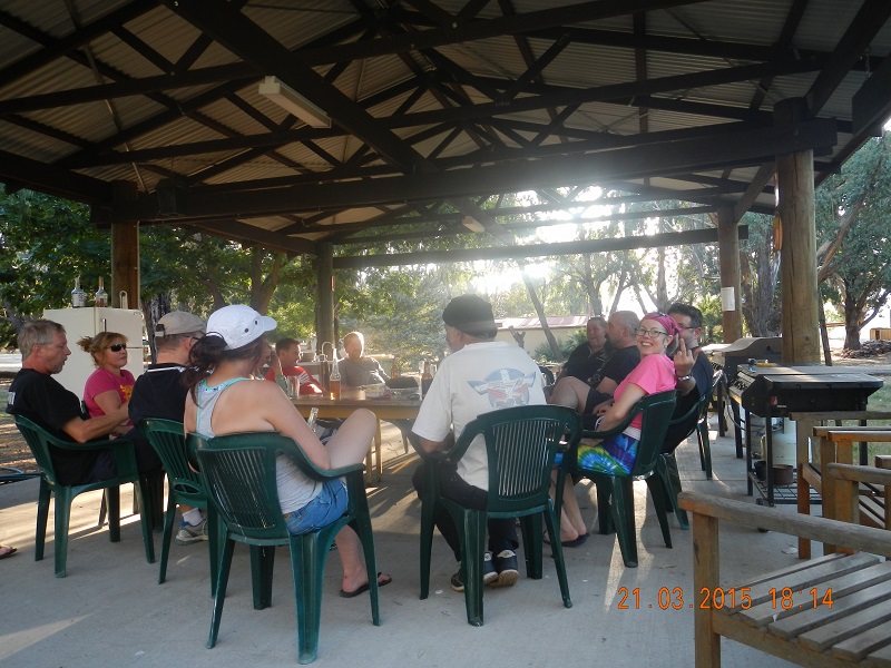 Rick had done a clean up of the caravan park and gathered an enormous amount of debris for our fire…..which roared for hours (and i think helped keep the mozzies away). Another fabulous night and great food before we head off to bed.