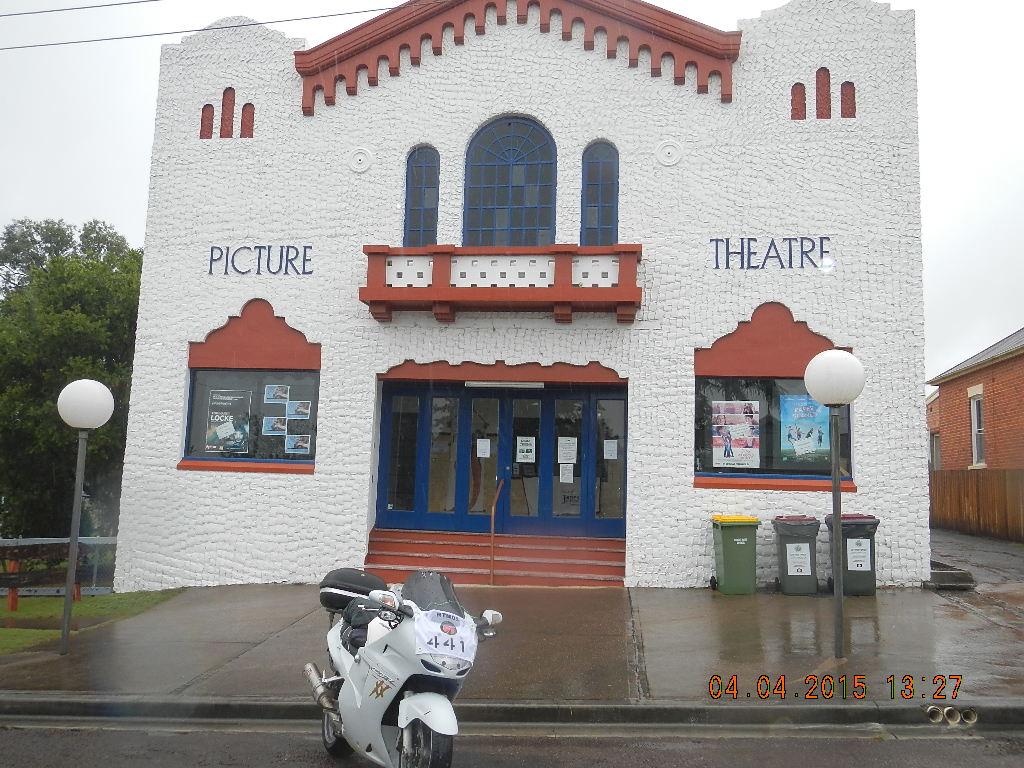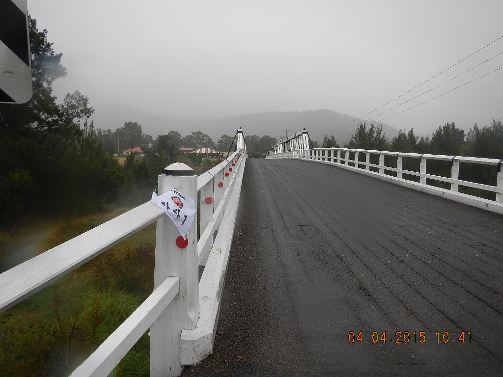 Then thought I can go through Dungog and grab another pic before heading to Karl. The rain was relentless, it was not fun anymore and the roads were terrible, chopped up, gravelly in parts and slippery. In Dungog, I managed to take refuge under cover of a business verandah on the footpath, have something to eat before getting my last pic.