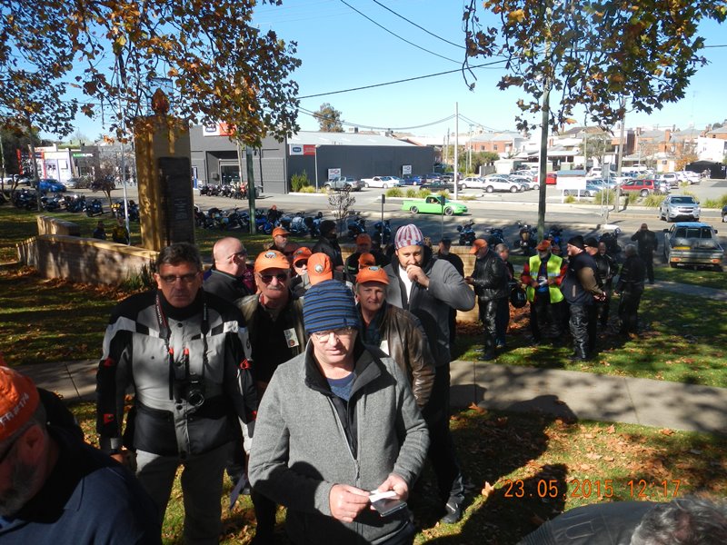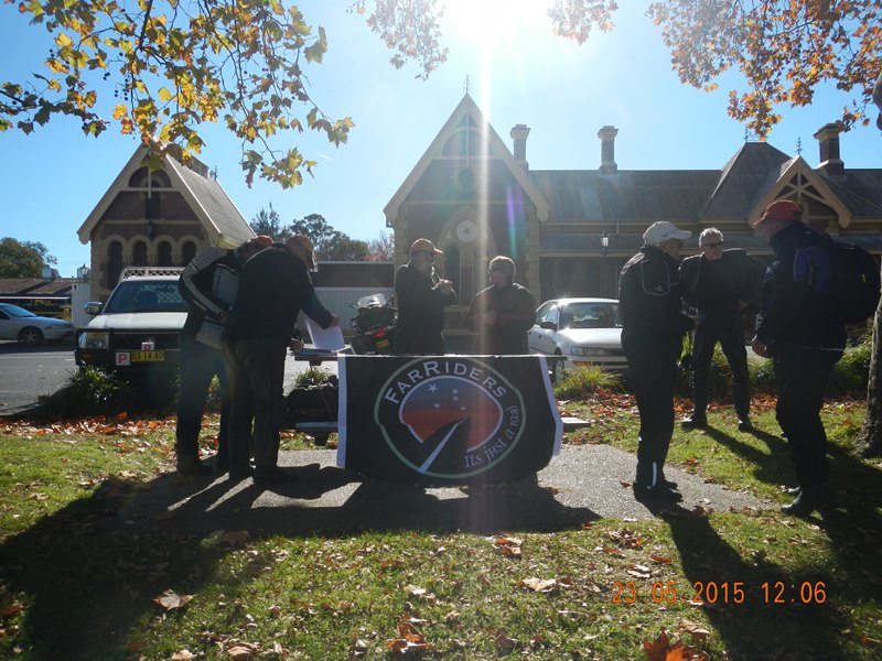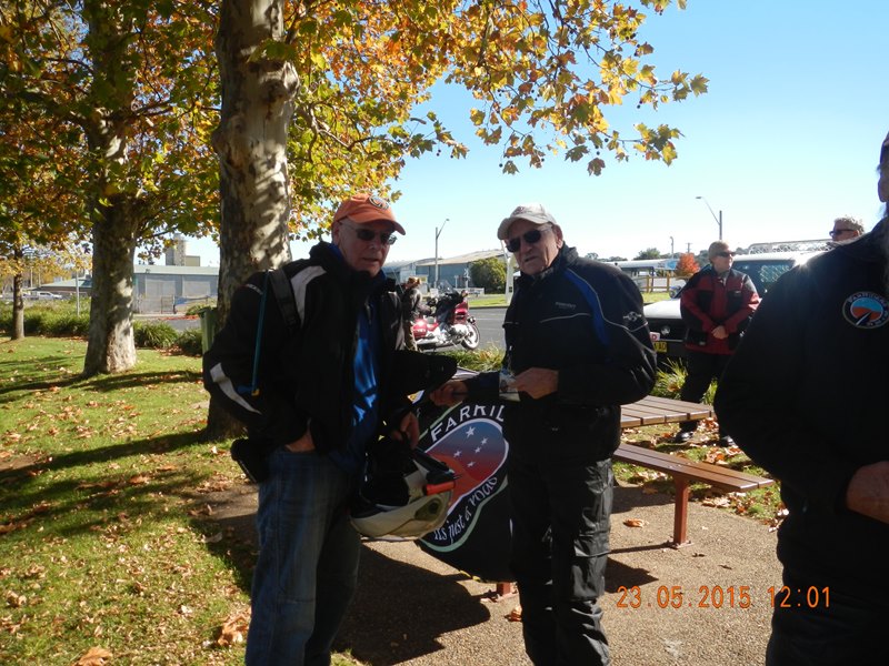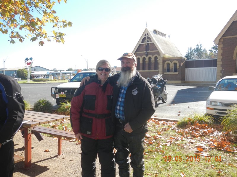 Full tummies and with plenty of time we headed out….Boorowa, back to Harden, through Wombat (who names a town Wombat?) and then with a smile we roll into Young. What a pleasant sight to see Gaggs and Heather as we ride through town and follow them to Anderson Park – we made it!!! and with plenty of time to socialise and introduce Dad to my other family.
