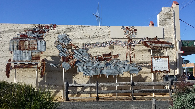 The Hutt, is an example of how the local Merriwa settler lived back in the day. There’s also a small museum off to the left and some local crafty things that all help raise funds for the local community. To the right on the side wall of the cafe is an iron work mural….pretty amazing.