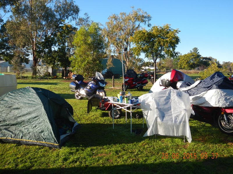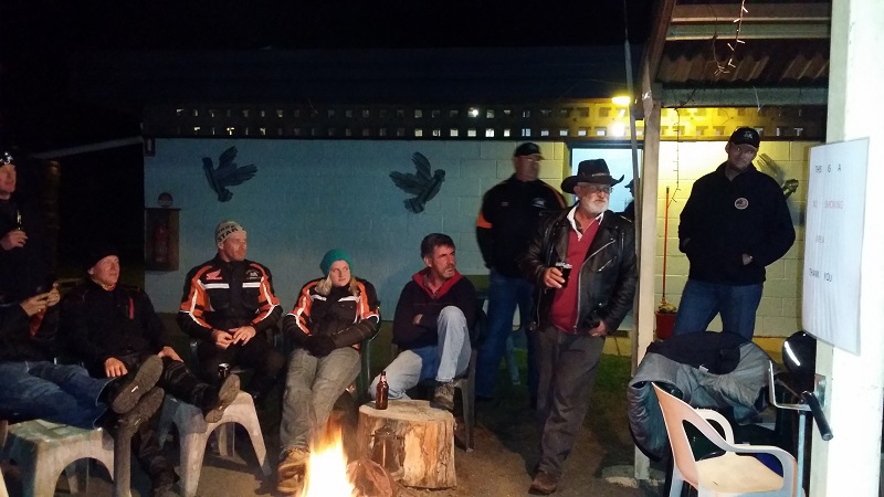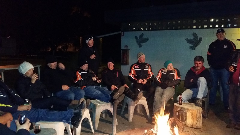 We are warmly welcomed on arrival at the Gulargambone Caravan Park by the OzSTOC guys and Dave & Bernadette the park owners. Into our cabin (former retirement home cabin) parked up on the grass, unpacked, changed into warm clothes (that isn’t riding gear) and we are off to start the socialising with old and new friends.