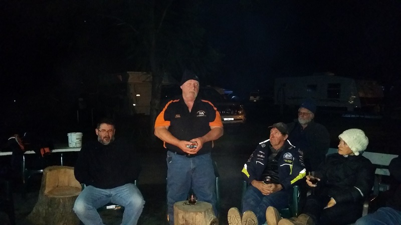 The auction started with Tipsy’s $4.80 and grew to a whopping $344 (I think) with all the proceeds going to the RFDS – absolutely awesome achievement and for a good cause. Now the eating of said Brownie was predetermined by the OzSTOC crew who generously forwent the desire to devour the Brownie themselves and thought a worthy recipient was Tipsy. Tipsy has his own story but I soon found out that this RTE was to be his last attending on 2 wheels – yes, he was hanging up his riding boots. He is a character and has more than a few stories to tell but tonight I saw a humbled man who was overwhelmed by the generosity, kindness and respect shown to him by his fellow riders.