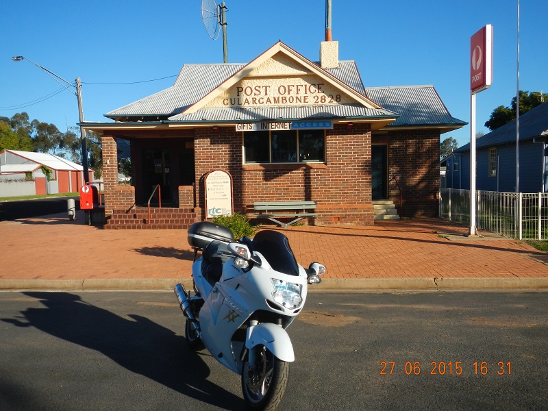 Into Gulargumbone, my research had said there was “no” fuel here, however there is a Inland Depot on the right just as you enter town and these have a 24hr swipe card pay thingy (just for future reference) which could be in handy sometime. We find the supermarket come bottle shop for supplies then head off looking for the caravan park……but not before the obligatory photo of the post office.