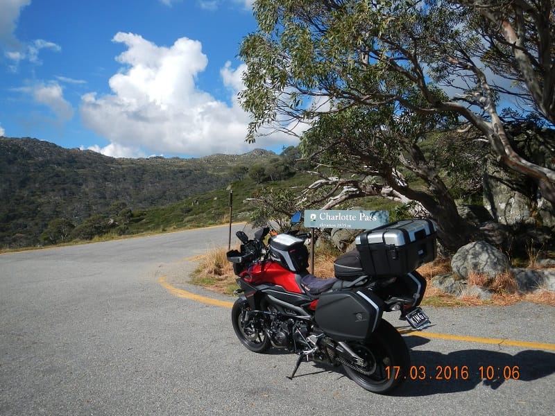 Charlotte Pass – can you believe there are road works on this road! S’pose with ski season encroaching they have to get it done. It’s cool this morning but the sun is out and it’s amazing how different everything looks when there aren’t thousands of other bikes on these roads. The scenery is spectacular, breathtaking….I don’t know how you couldn’t not enjoy this. On the way out Karl takes a little turn off to explore and finds a gravel road…argh! I followed him part of the way but then turned around – I hate dirt.