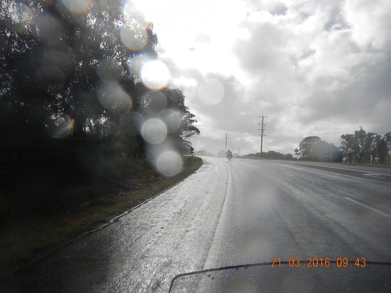 The patches of blue between the grey are there you just have to find them. The rain stopped for a while and in Lakes Entrance the sun came out but we weren’t stopping for photos. As you can see from the pics below the time difference between the changes in weather isn’t long and it was pretty much like this all day.