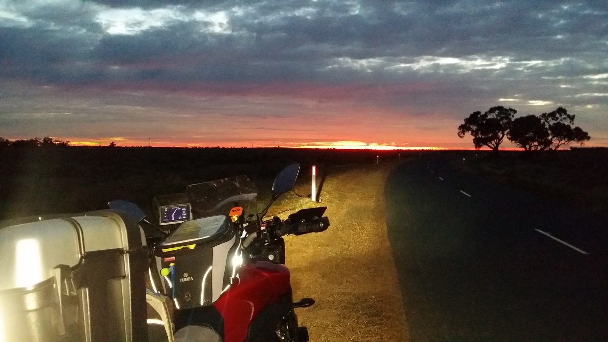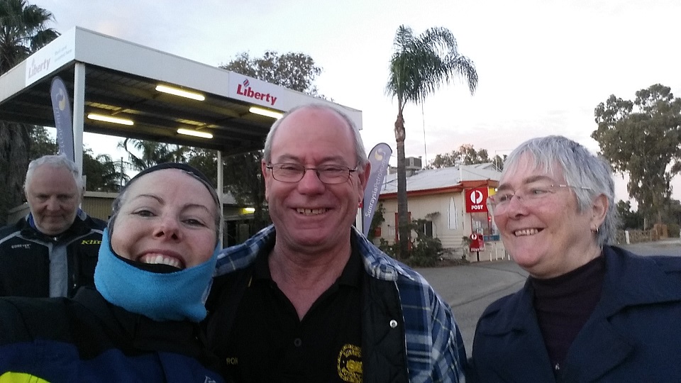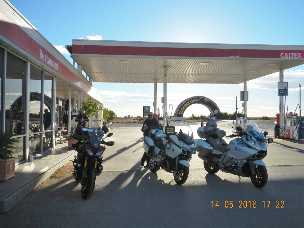 Frans and I are out slightly ahead of my plan into the mornings darkness with all lights blazing. Through Tooleybuc and onto the Mallee Highway heading west for South Australia. We pass Rob & Knave before Pinnaroo where we stop for fuel and breakfast. Gaggs arrives, a quick hello and hug (of course) and he is off.