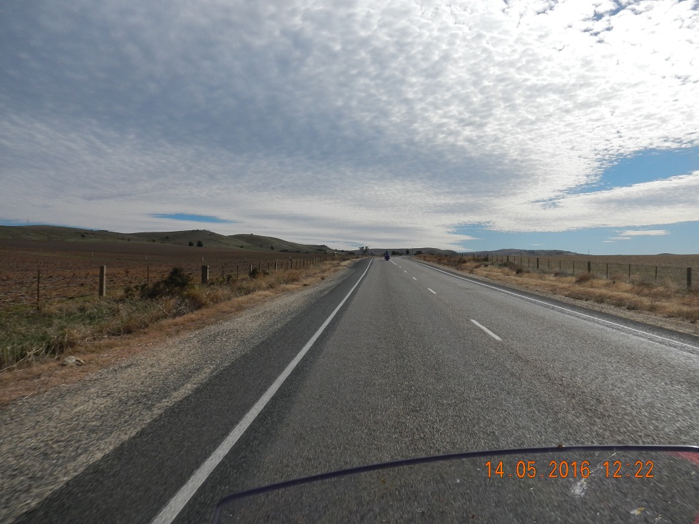 Tailem Bend comes and goes and I think of Triple Treat and whether he’d be out of bed or still sleeping after his huge ride. Now my GPS had me following the A1 – Princes Hway but as I was planning on going straight ahead, Father Frans waves me in to follow him through Murray Bridge. Glad I did cos the scenery was magnificent but the wind came from nowhere.