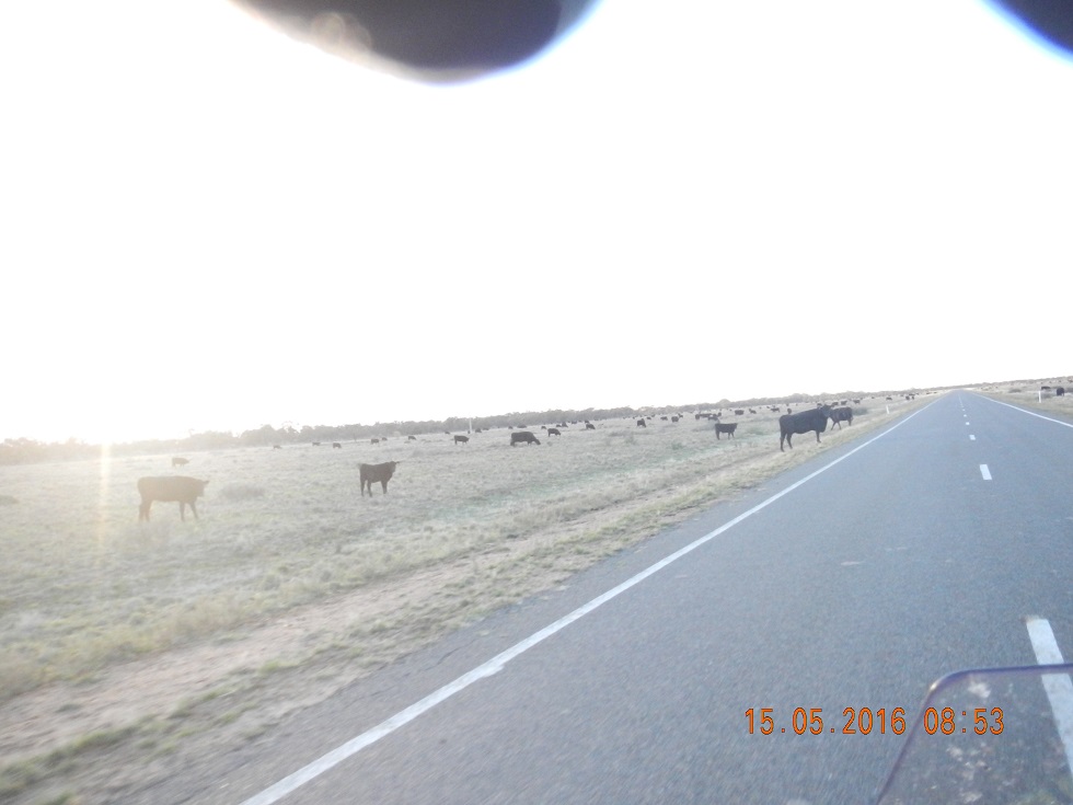 Just before Pretty Pine the farmers have their herds out grazing the verges…….hundreds and hundreds of cows crossing the road or wait, stopped in the middle of the road. Think they are just as curious in me as I am with them.