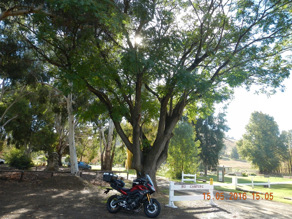 G’days, hugs, how ya goin’s are going on everywhere before Fatman assembles us for the group photo and we all start to disseminate. Yes, the time goes by too quickly and it’s now time to start heading home. A quick consultation with Rob & Knave (since we are all staying in Tooleybuc for the night) and the guys decide to follow me through the back hills into Sedan. I’m kicking myself now for not having the camera round my neck for my on the fly pics cos the countryside is absolutely gob smackingly, breathtakingly gorgeous! WOW! Somewhere up the road Rob pulls up for a power nap and then Kanve and I pull in so I can take some layers off and have a break.