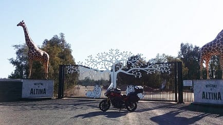 Have I mentioned at all how much I’m loving this heated gear, well it’s served well again this morning (the jacket and glove liners anyway). A short stop at the Outback Shearers to unplug the pants and stock as they continue to overheat me to the point of burning (will have to remember to ring Geoff and get this sorted out when I get home). Toddling down the road, bopping along, enjoying the lushness of the fields due to the rain. North of Darlington Point you come across the entrance to a zoo – Altina Wildlife Zoo naturally you have to take a pic of this. Now this place we will have to come back to and visit. They take you around the park/zoo in the back of a horse drawn cart, up close and personal like with the animals, that’s what the man who came to the gate tells me anyway. Interesting.