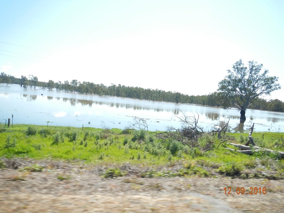 The reserve light been flashing for a while now and I’m hoping to make Narrandera. Roll in with 310km on the clock and wondering why is it that crossing the Hay you always use more fuel……ah great mysteries of the world I tell you….LOL! On the way across a lot of roads were closed due to water crossing everywhere. Today the water is still rising but is just contained by the banks however, there are several signs warning of “water over road”.