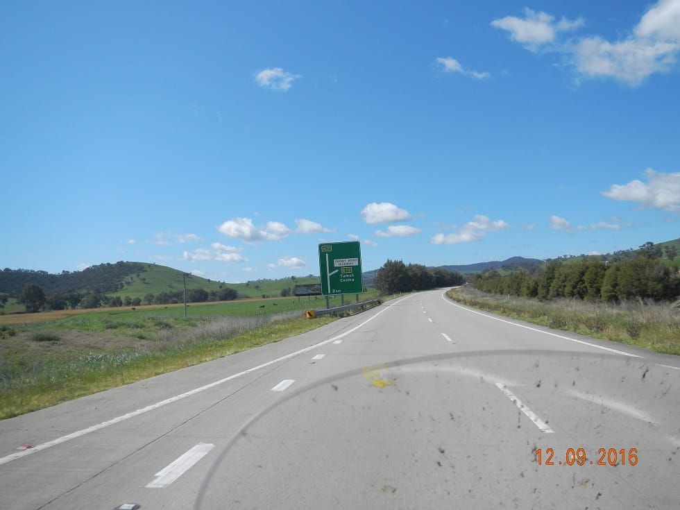 It’s a wonder day to be out riding…..hell yeah! Love is a funny thing, ya know. I’ve been away from home 3 days, 3 days without my Karl (talking on the phone just isn’t the same) and the heart just yearns for him. It makes you realise how much he means to you. Into Wagga and a pic for Karl a plan on a pole. Well he could tell you exactly what type of plane it is and probable when it was built but for me it just reminded me of him. The Hume highway the pathway to tangents that hold far more exciting paths to enticing roads but not today…..hmmm, well maybe just a little detour – The Snowy Mountain Highway, oh well, maybe not today…darn.