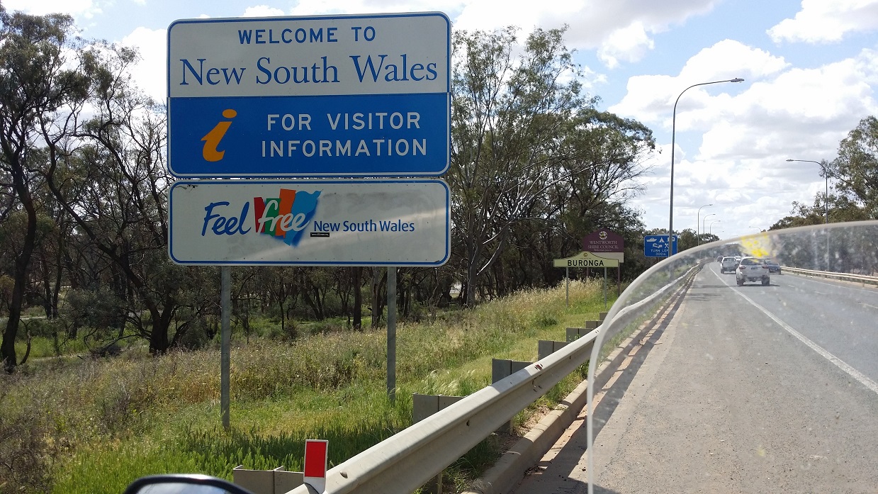 Through Mildura and I wave to Marls, hoping she’s having a good day at work and continue to watch the “Dance of the Clouds”. Had to stop at the border, the thought of nearly being home was to strong an urge to resist. Starting to get a bit cooler now and as it come to the outskirts of Euston, I spot this street sign. Had to turn around and go back for a photo. Fatman & Lynne this one’s for you guys!! Having a giggle to myself and chomping on Mentos, I continued on. The flip face helmet is great for a quick snack from the tank bag. You just have to remember to tear them open first or get something in a tube that is easy to extract with teeth….lol
