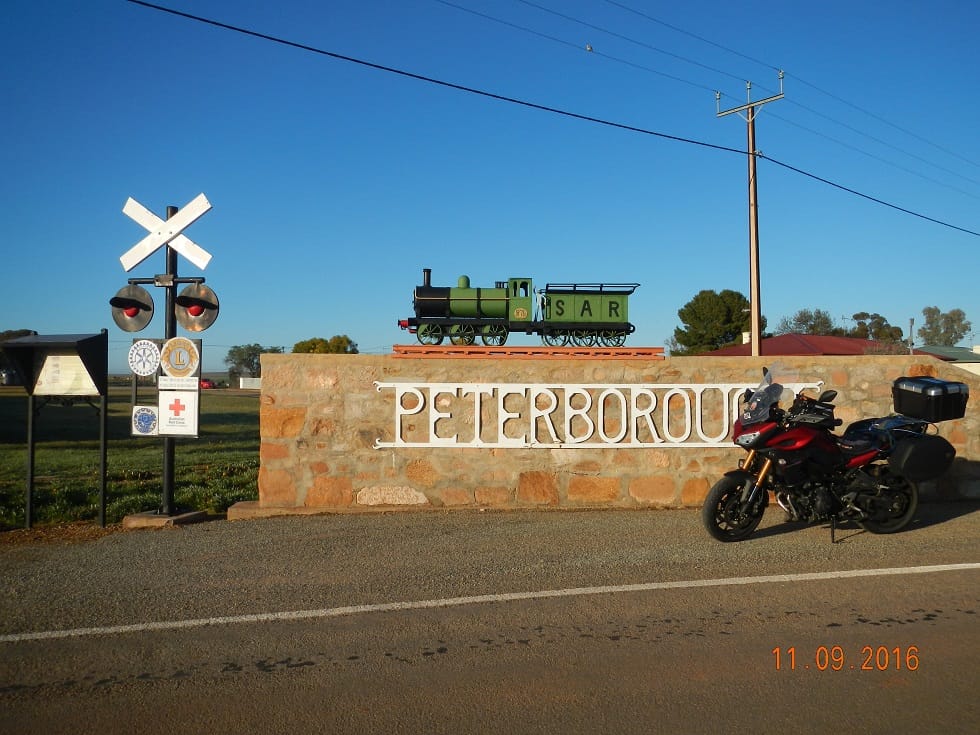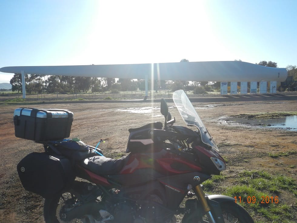 It’s picture day today! No SLR’s, giant lenses or other stuff (like other can use), just the good old point and shoot and phone camera – you make do with what you have. And I can’t complain when I get pretty good pics. Peterborough for a train and north of Burra for a wind turbine propeller all the while watching the fuel gauge and hoping I could get fuel in Burra. The heated gear is working a treat again this morning, providing a lovely warmth keeping at bay the onset of fatigue in the right shoulder from the bursitis. A lovely elderly couple asked me “aren’t you cold dear & are you on your own” to which I replied “toasty warm thanks – heated gear plugs into the bike and Yes, hubby is waiting for me in Sydney” the looks of amazement on their faces was priceless. They were a little more curious so I indulged them some more conversation before gracefully advising I really must get going. When you aren’t on the clock it’s the moments like this with total strangers that solidifies in my mind part of the reason I keep riding to places far and wide.