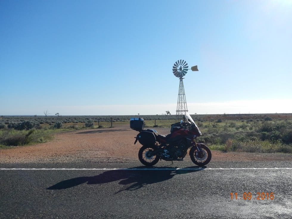 Somewhere along the B64 I spot this windmill, standing proud like a soldier guarding his post and thought “now this is what an entrance to home should look like!” One day my Sweety and I will have a lovely home to call our own embellished with hopefully a windmill. Yamba roadhouse for my second breakfast and dropped Marls a quick message to let her know that I was making good time and wouldn’t require the bed (this time) – thanks guys, it’s lovely knowing you have somewhere to stay if required. Another couple at the roadhouse with an old Holden and an old bubble caravan had broken down – gearbox stuffed. I helped push the car into position so they could hook the van up and limp into Renmark. Naturally, I asked did they have far to go…..”on our way to WA for our first holiday in 25 years!!” My heart felt for them. They didn’t look like they had a lot and he’d worked on restoring the car and van especially for the trip (had taken him years). I hope they make it!