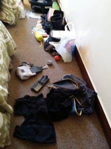 Anyways, pub located, parked up and checked in, time to unpack. Open the topbox and guess what? The spare bottle of water was ruptured…yep, water bottle 1, Kimmie 0, so off to the pubs laundry to dry everything out……argh.