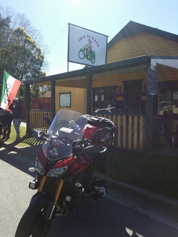 Nana Glen a little piece of backroad heaven. The aptly named Idle Café seemed the perfect place to stop for some morning tea a cuppa and Panadol. Here I ring Karl and let him know of the change of plan…..head to the in-laws at Forster for the night instead of camping out somewhere under the nights stars. Then I ring the in-laws to ask if it would be OK, naturally it was fine.