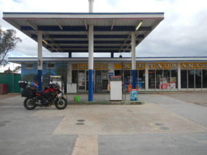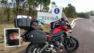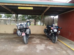 Mixed morning today. Bit of excitement…hit a Roo this morning about 80km west of Renmark in the middle of nowhere. Nowhere actually has a name Pooginook. All is good! Dudley has some battle scars and I am ok. Smurfette just squealed like a girl :). In Crystal Brook some 200km from where it happened having breaky at the servo and making sure all Dudleys bits are patched up and holding. Not game enough to take anything apart just in case I can’t get things back together.