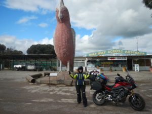 While I’m here a friendly face arrives….it’s Gags..Woo Hoo, so we hatch a plan to have lunch together and ride on to Wudinna together. But not before a pic of the Big Galah….LOL