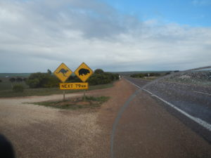 Ceduna to Penong first stop for fuel but the stretch in between WOW. There is sooooo much country out there to see, it’s mind boggling. Not far out of town and I came across this sign for the next 79km. Eyes wide Kimmie!!! As you can see it’s rained already, not much it’s more like a spattering sun shower than anything serious. Dries up in no time.