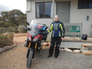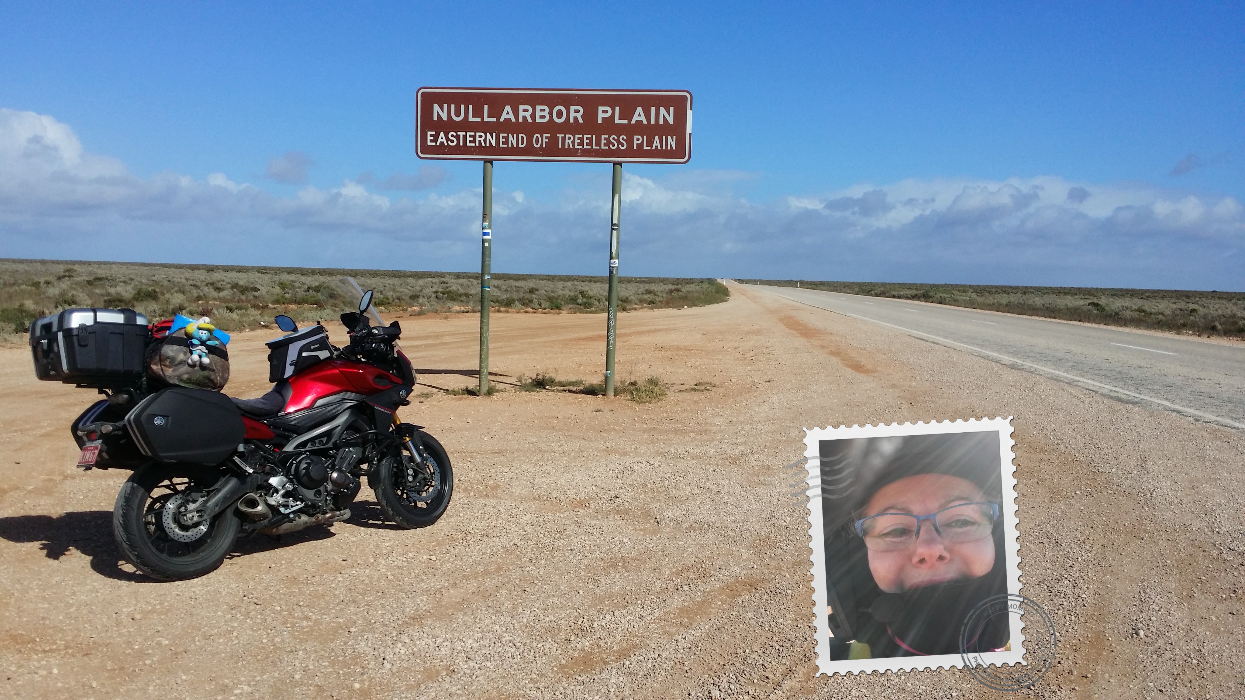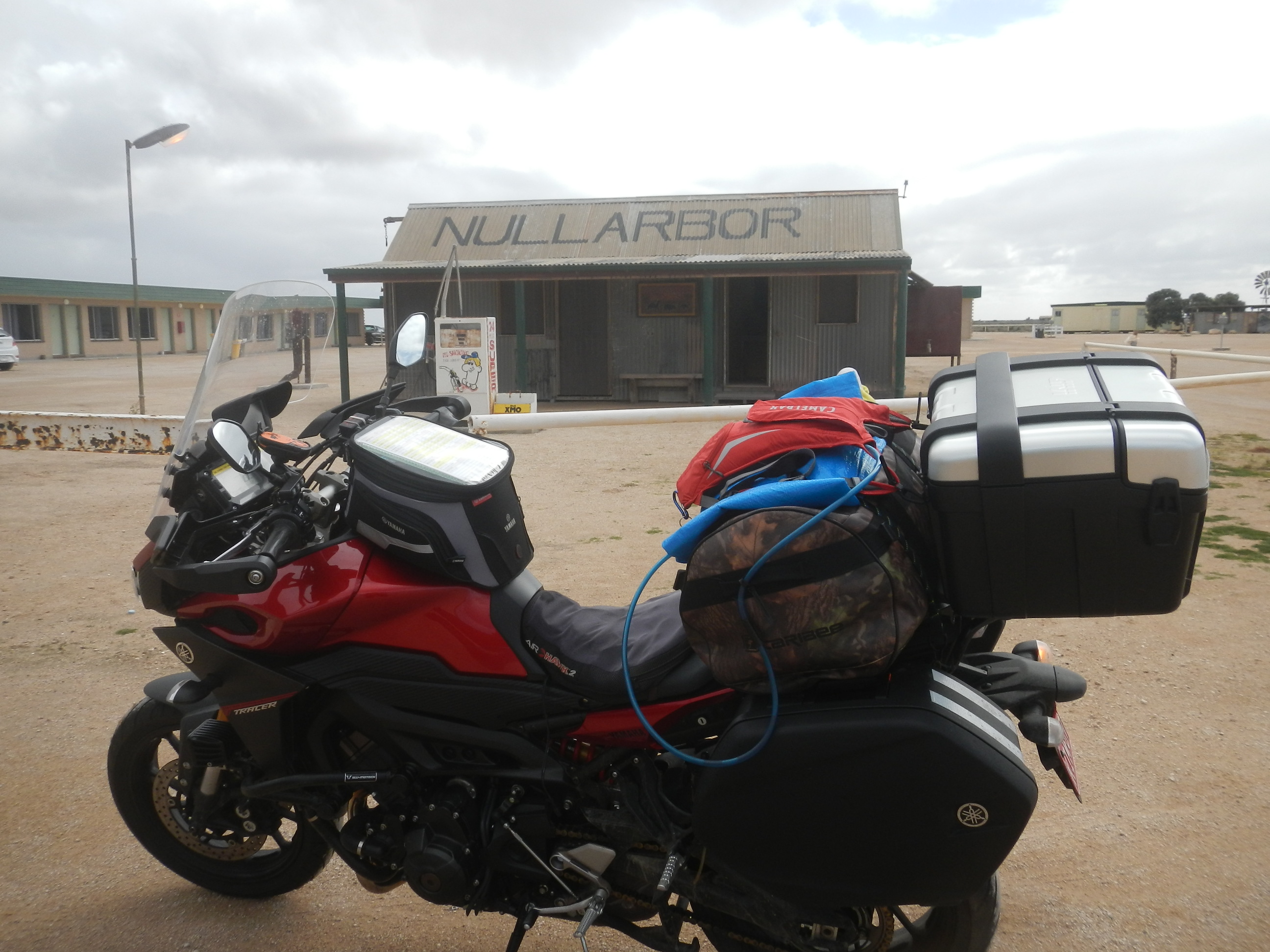 Onya bike girl you’ve got to be somewhere. That somewhere was for fuel and lunch – The Nullarbor Roadhouse. This place like many along this stretch is an oasis in the middle of nowhere. This is the original roadhouse and fuel pump…..no I didn’t get fuel from there, they have a shiny new roadhouse, petrol station, motel now which has a little bit of everything. As I’m filling up that rain cloud from before decided to have a cry…poo. Parked up Dudley under cover and went and had lunch inside out of the wind and rain. Rang Karl, boy I wish he was here….it’s amazing! Everything good with me and with him, I hang up and have a little moment of emptiness – where your heart sinks and the pang that the one you love so much can’t share this with you. Sweety I hope you can get a sense of all this by my words.