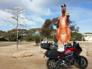 Thankfully I didn’t see any but I did see a dingo with some unthoughtful persons rubbish in its mouth. The wind has really picked up now. I’m on my last tank of Dudley go-go juice before I reach my destination and am sitting nicely along on 115km with the cruise control. The heated gear turned down low just enough the take the edge off. Have I mentioned how that has also paid for itself this trip.