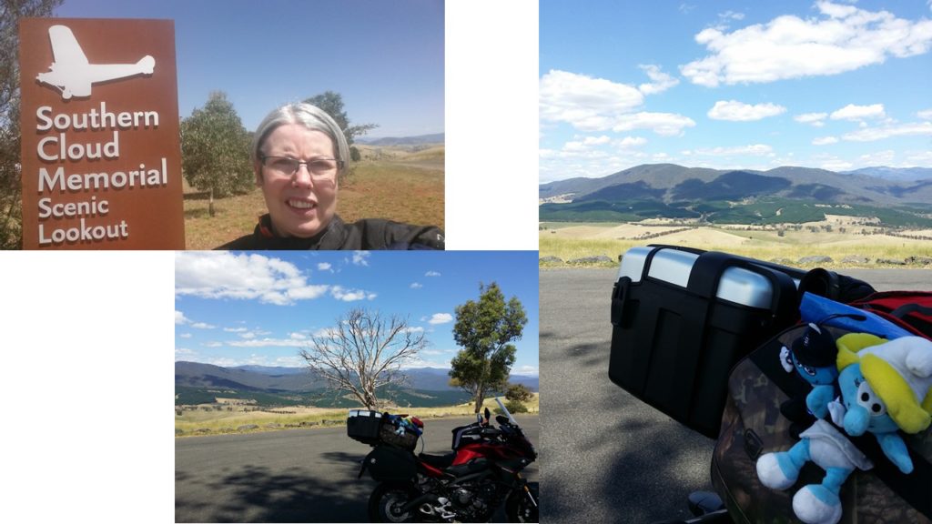Bit of traffic on Elliot Way today so it’s nice and steady. Finally into one of the best lookouts I’ve come across in my travels – The Southern Cloud Lookout. I can’t help but stop here every single time I pass through. Not far past the Tumut Power Station I came across a lady with a flat tyre. Naturally I pulled over to assist only to discover her other half on the ground with the job almost done. They mentioned that of all the people that passed them, I was the only one to stop and offer assistance…. “and you are on a motorbike?”…LOL