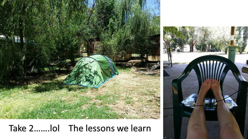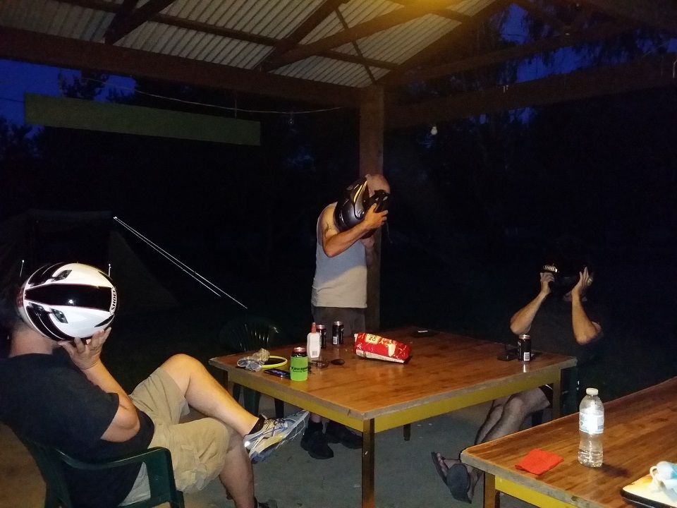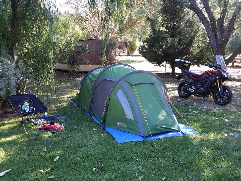 My last night in Paradise. Cooked lamb & rosemary snags on the bbq & had salad with it. Was very lovely. Cleaning & packing things up now. Planning the ride home. A lovely family arrive in a camper trailer, the bloke has been coming to Tintaldra for some 18 years and we swap stories about our favourite place. Later on we all sit under the awning with Rick by the fire.