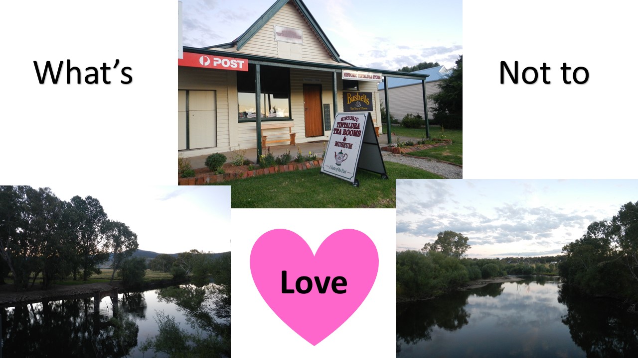 It’s not hard to see why I love it here. Country air, the sound of cows mooing, the birds are squawking and the peacefulness! It’s like I have the universe to myself….Bliss. Turn the corner over the bridge into Victoria and Tah-Dah!! Made it!!! My piece of Paradise in Australia @ Camp Kimmie in the Clearwater by the Upper Murray Caravan Park – Back Tintaldra Rd, Tintaldra. The only thing missing is My Sweety xxx