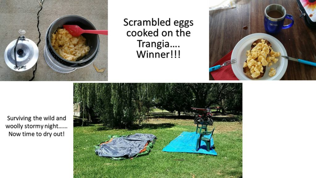 On the plus side, I was still dry 👍. Managed to cook scrambled eggs & muffin for breaky on the Trangia. Feeling very proud of myself😁😁