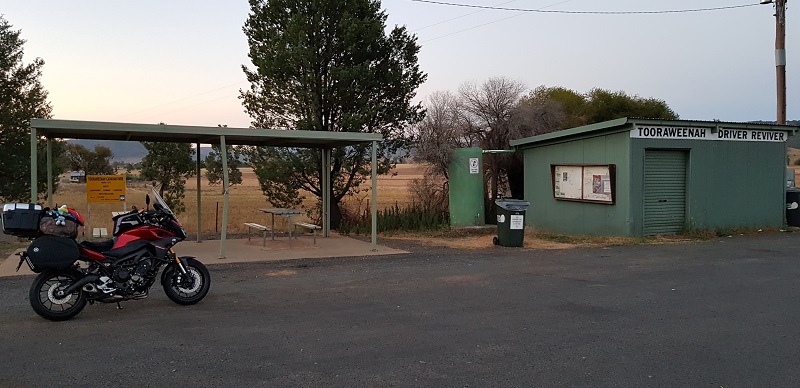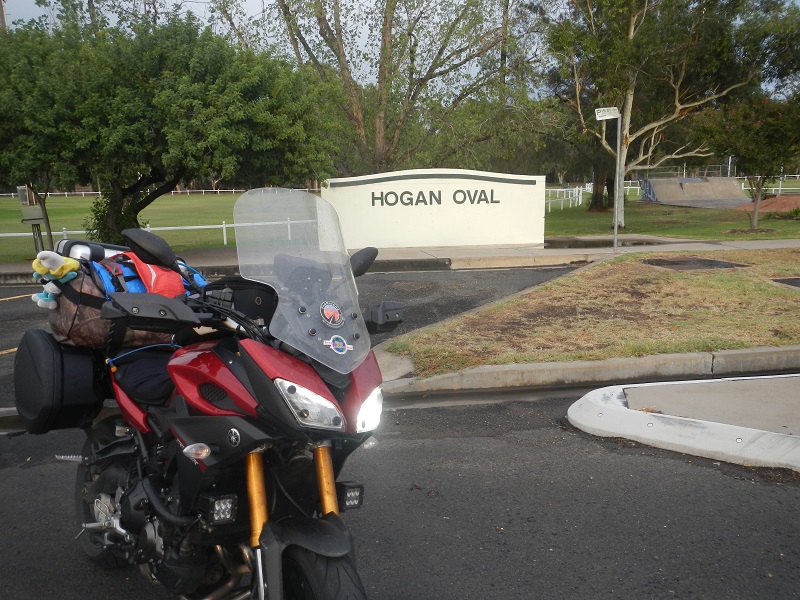 Grabbed fuel and thought I’d get some KFC for dinner but it seems the town has been overrun by kids for some sporting event and the little buggers were all lined up at the counter unable to make any decision about what each of them wanted. I waited 10 minutes then walked out. Down to Maccas, not quite as infested with kids and only waited 2 minutes before being served. On the way out two gents approached me & Dudley….turns out they are FarRiders and one of them was going to Nindigully…what are the chances!!! LOL.